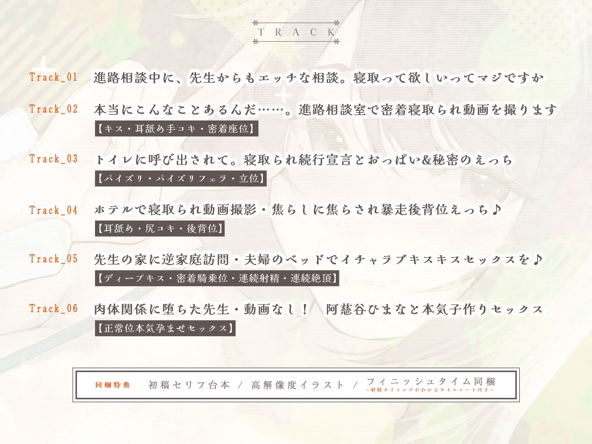 ▼トラック6:肉体関係に堕ちた先生・動画なし! 阿慈谷ひまなと本気子作りセックス♪(15:00)