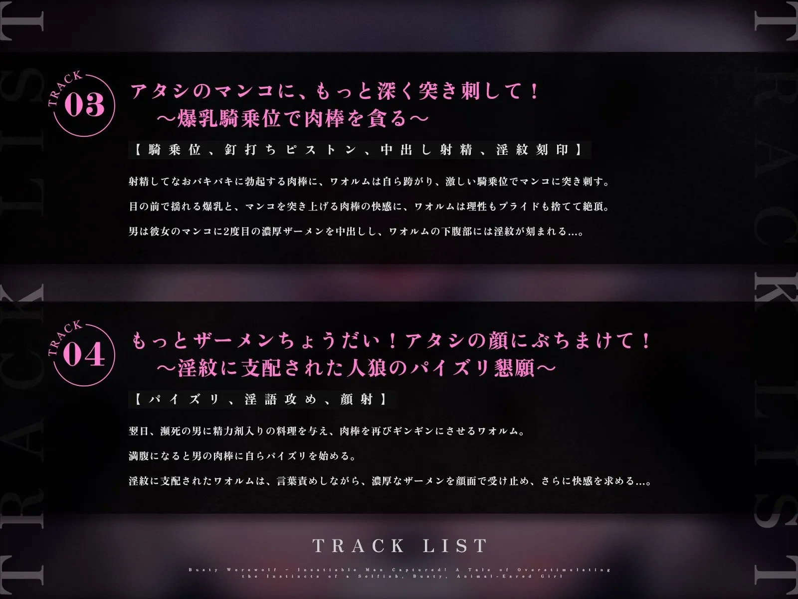 【爆乳人狼】絶倫男、捕獲完了!〜自分勝手なケモ耳爆乳娘の本能を刺激し過ぎちゃう話〜(KU100マイク収録作品)