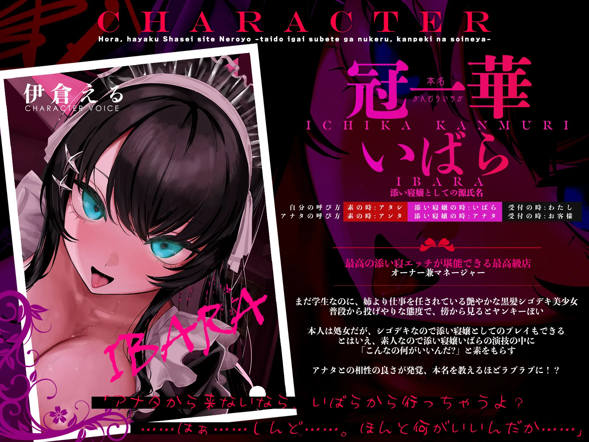 ’いばら’としてエッチなサービスをしつつ、素の投げやりなところを見せる高級添い寝エッチ屋のオーナーである