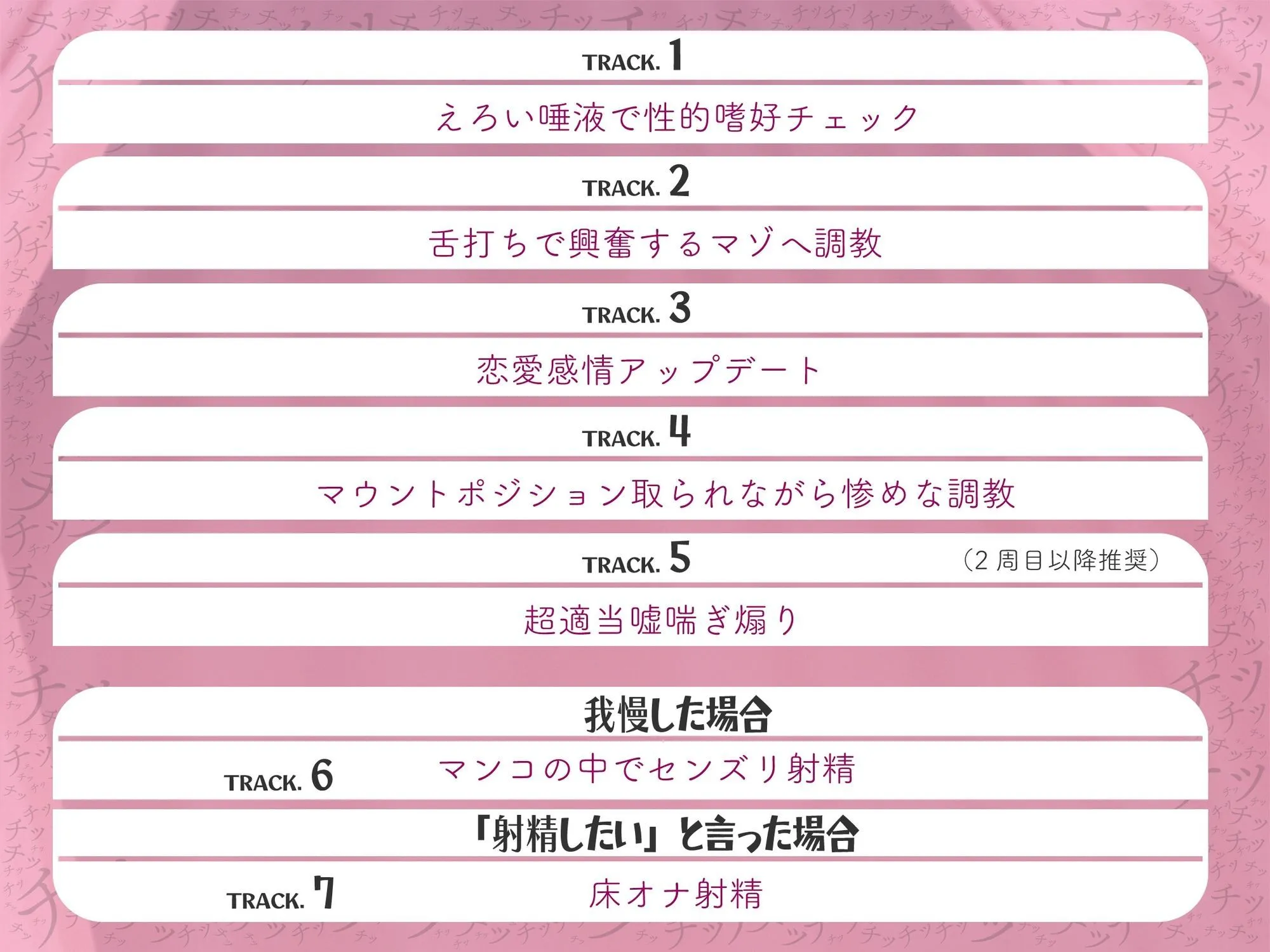 Track5も続けて聞きたい場合は、2週目以降(嘘喘ぎ追加)をご参照ください。