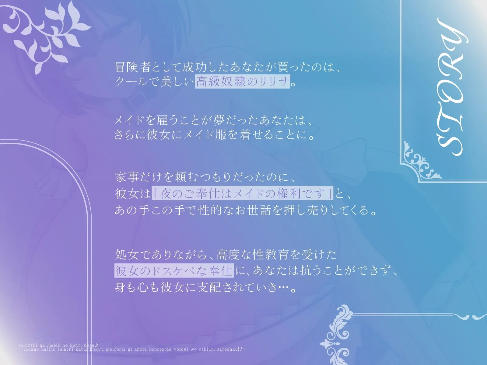 性奉仕はメイドの権利です♪〜ただの家事のために買った高級メイ奴●に、あの手この手で夜伽を押し売りされちゃう!?〜【KU100収録】