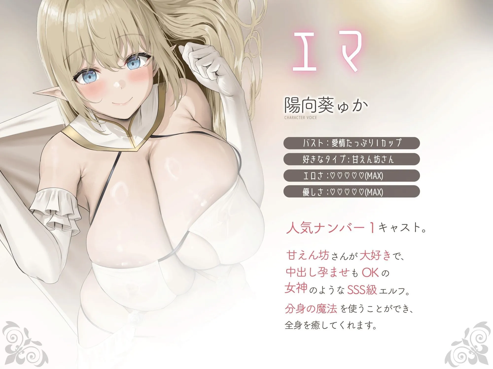 甘えん坊さんが大好きで、中出し孕ませOKの女神のようなSSS級エルフ。