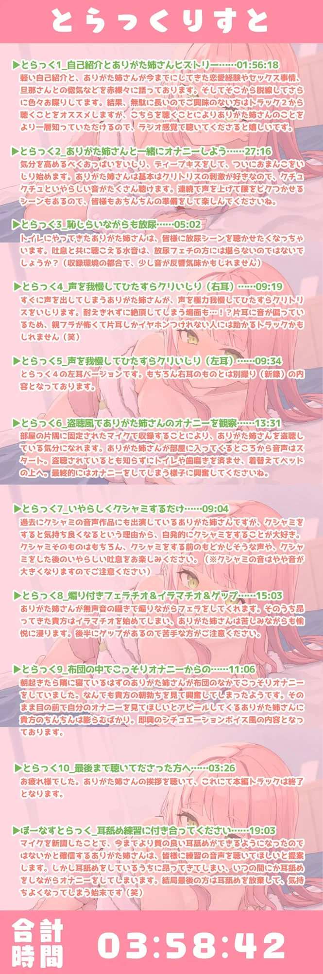 時にはオナニーに夢中でひたすら喘いでしまったり、時にはハプニングがあったり、そんなありがた姉さんを、何卒宜しくお願い致します!
