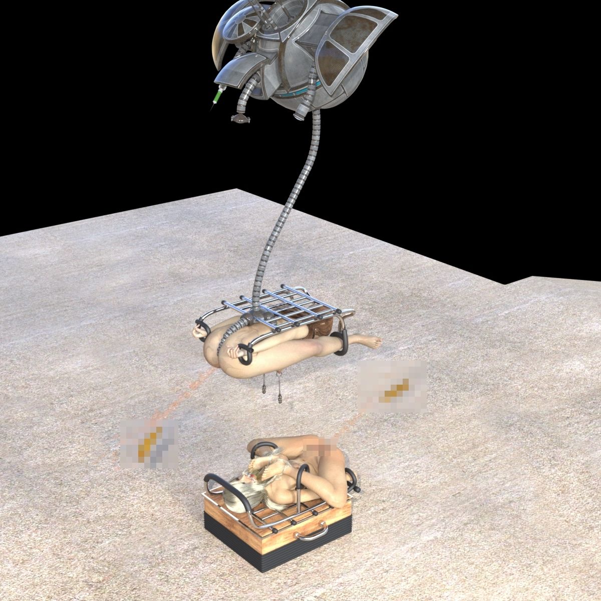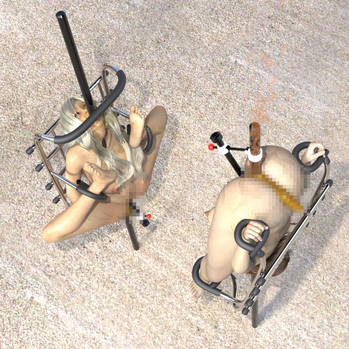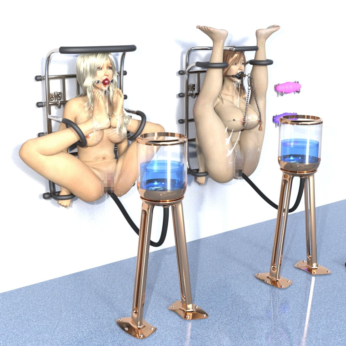 ムーメイの連れて行かれた場所、壁に張りつけられたものは ’空っぽの家具’ だった――。 中身なしのスカスカだったが、自分の他に奈子という娘の二人で、その’家具’は完成するらしいのだ。 「さあ来い、早くっ!」 2人の男に無理やり、それらの家具に拘束させられた。 無機的な色の透明な液体を、肛門からたっぷりと注入された二人を待っていた責めとは? 基本 5枚 合計 75枚 企画・制作: キンク文庫