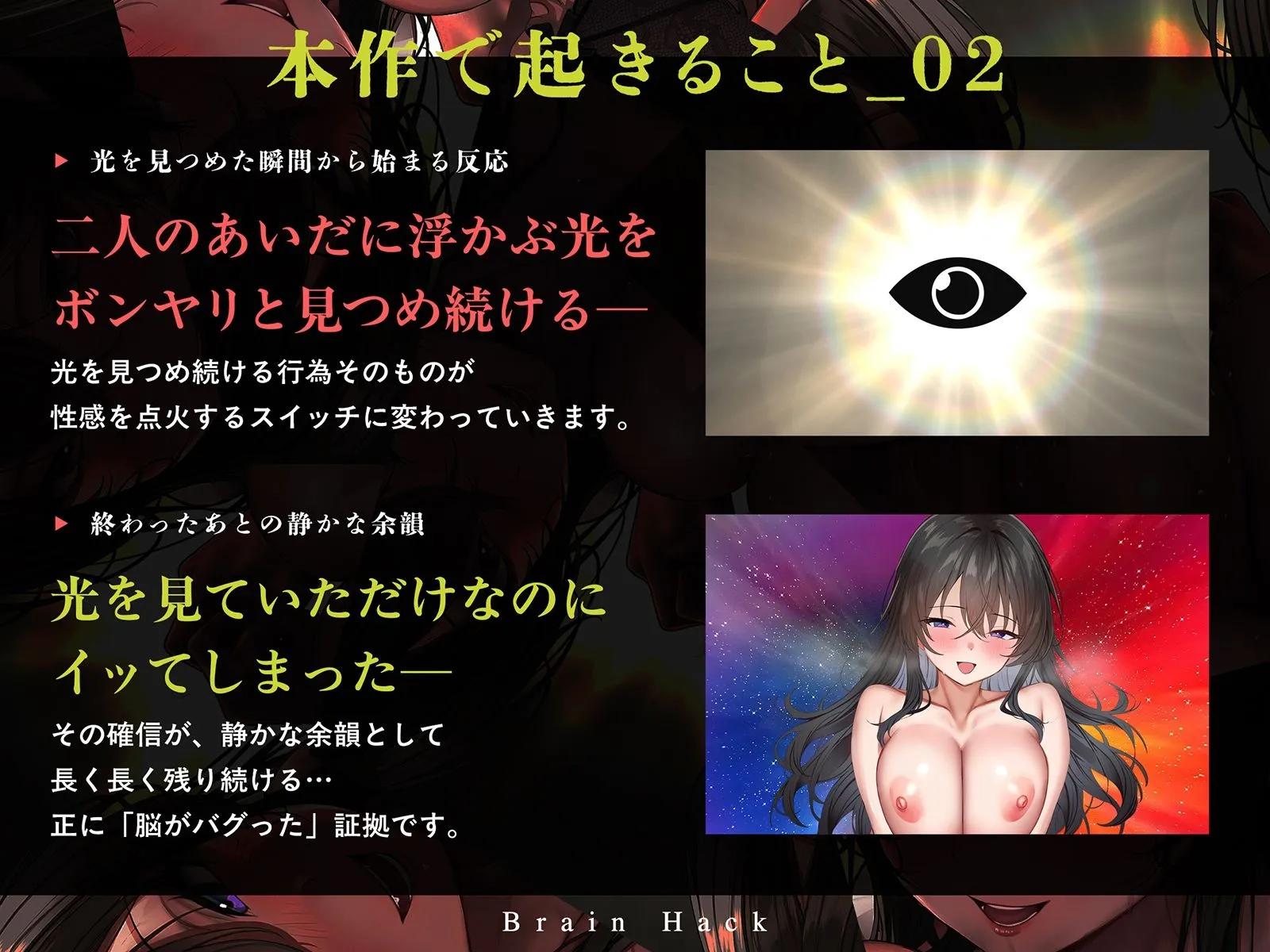 この作品は、視覚的な刺激で‘その気’にさせるのではなく、音と光によって催●状態を誘発し、自動的に身体の性感スイッチを入れていく作品です。