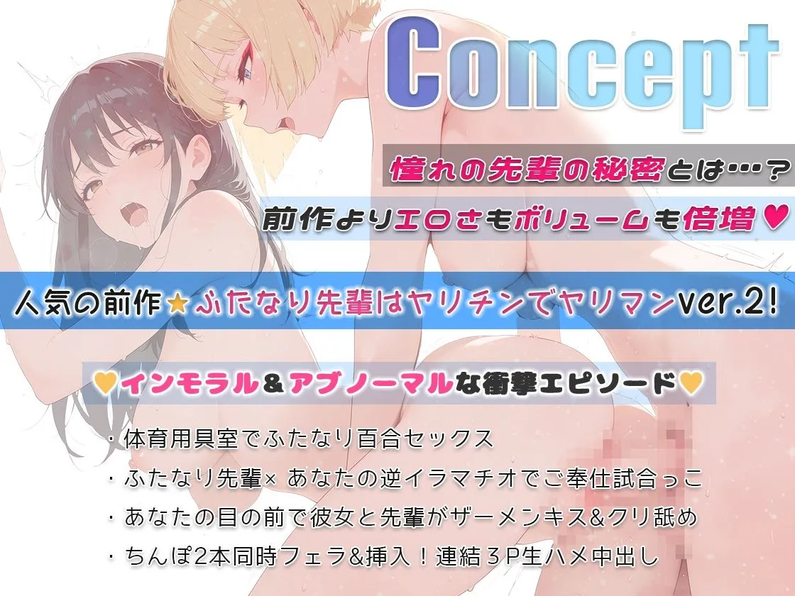 「ちんぽもおまんこも感じる…これすごいっ!キミが突くたびに…前がこすれて…3人で突きあうの…いい…っ!」女も男も堕とす僕っ娘王子様はふたなりだった!先輩の次なるターゲットになったラブラブカップルのあなたとあなたの彼女。ヤリチンでヤリマン巨乳美人な先輩のデカちんぽと超絶テクにあっさり堕とされ百合セックス、逆イラマ、ザーメンキス、2本同時フェラ生ハメ、連結挿入3P!インモラル&アブノーマルプレイの連続!
