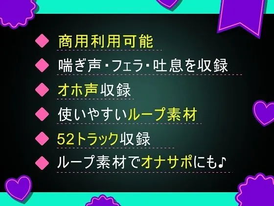 R-18作品制作に最適な、高品質な音声素材を52種類収録。