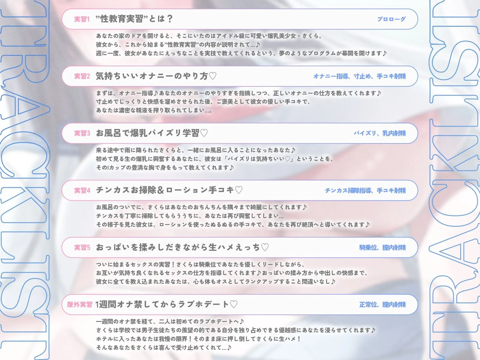 それでは、可愛すぎる指導者・さくらに翻弄されながら、実習を思う存分楽しんでください……♪