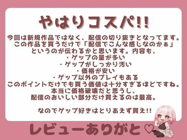※こちらは3日分のアーカイブをセリフを多めに切り取ったバージョンとセリフ少な目バージョン・ゲップシーンのみの合計3パターンに分けたものになります