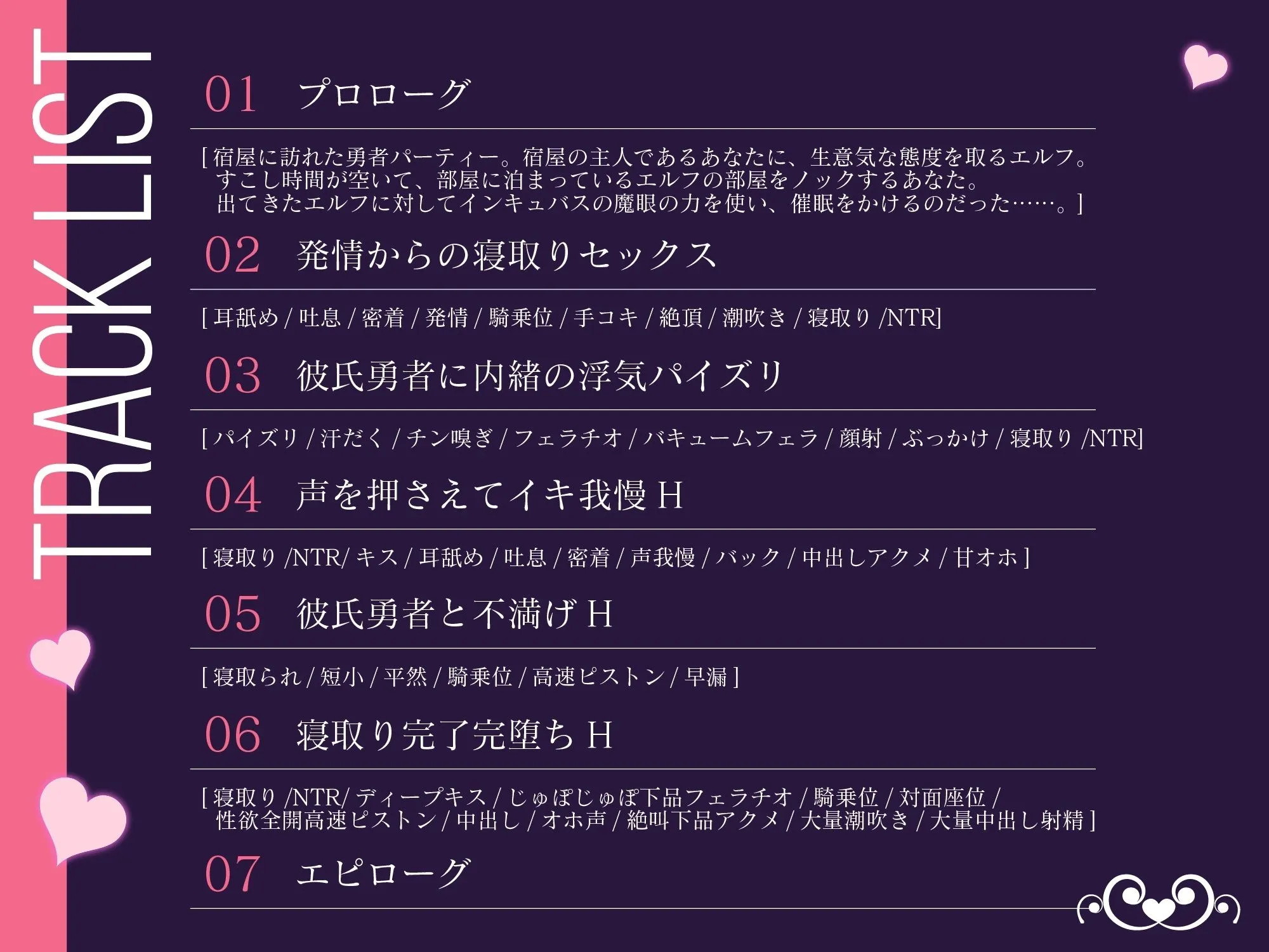 [宿屋に訪れた勇者パーティー。宿屋の主人であるあなたに、生意気な態度を取るエルフ。すこし時間が空いて、部屋に泊まっているエルフの部屋をノックするあなた。出てきたエルフに対してインキュバスの魔眼の力を使い、催○をかけるのだった……。]