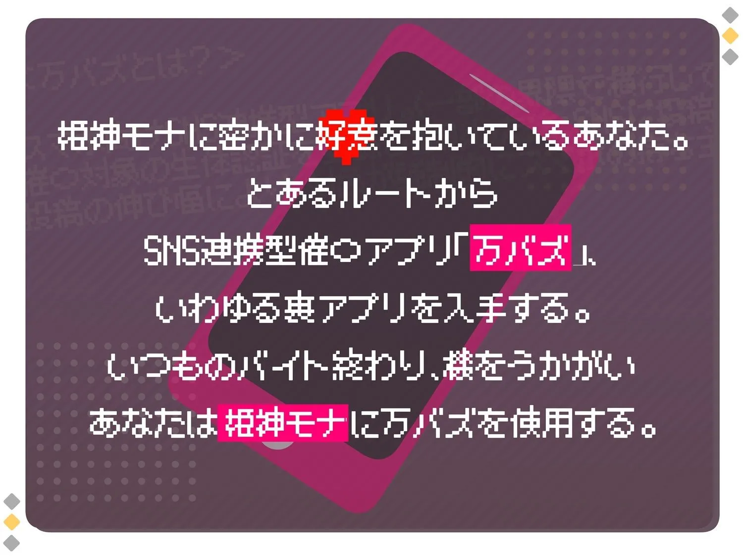 あなたはモナに好意を抱いており、とあるルートから手に入れた万バズを使おうとする。