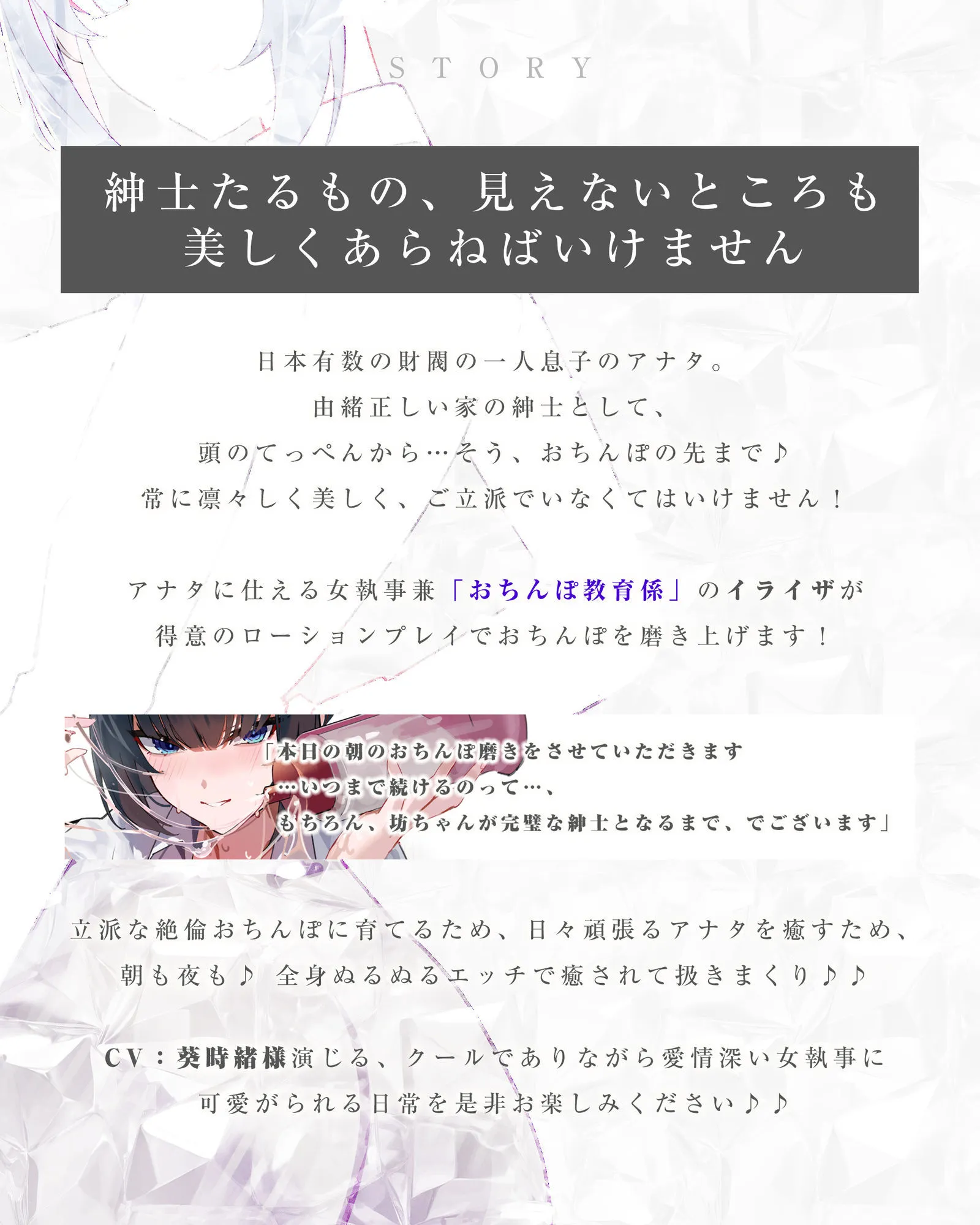 CV:葵時緒様演じる、クールでありながら愛情深い女執事に可愛がられる日常を是非お楽しみください♪♪