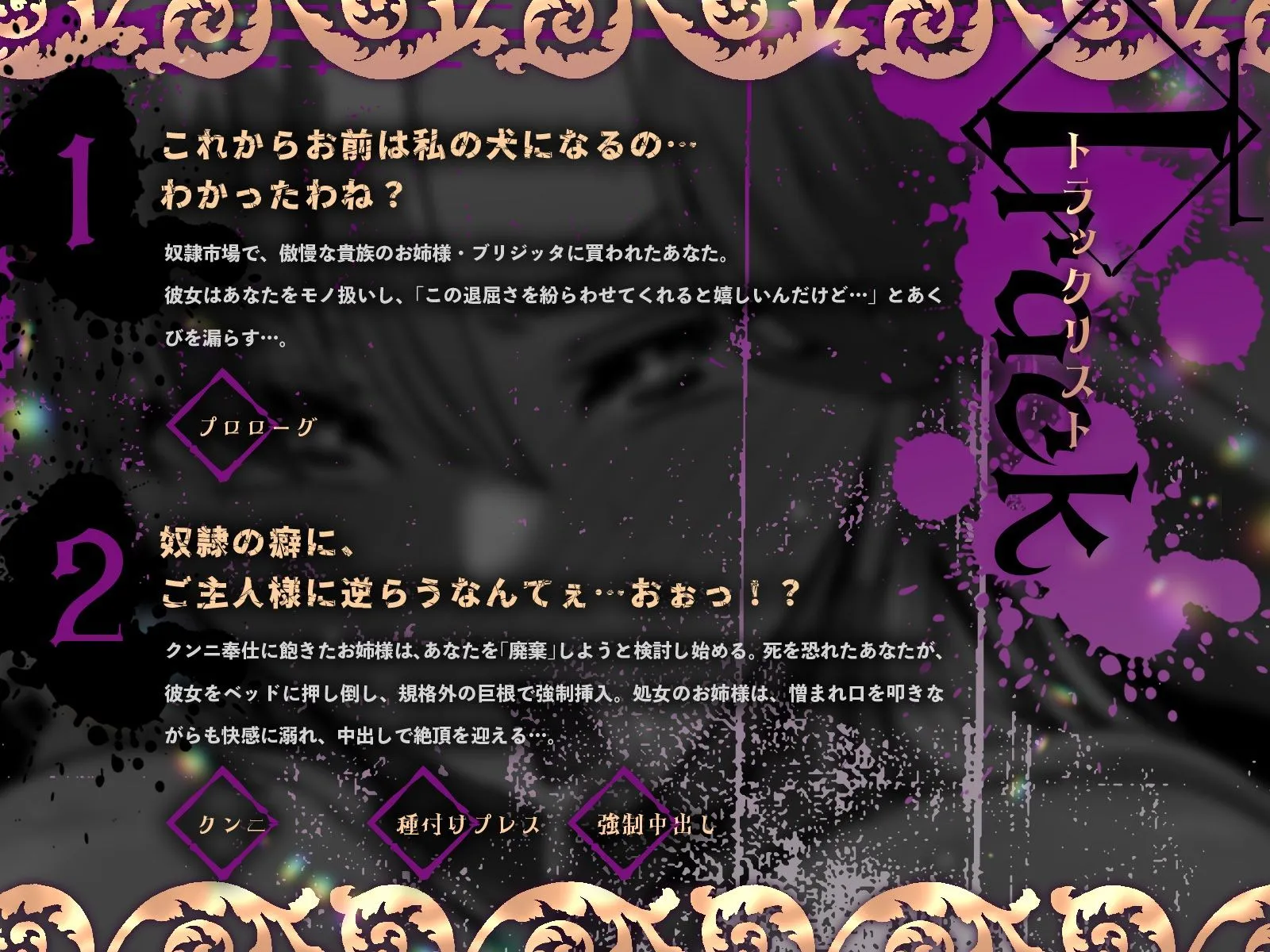 奴●市場で、傲慢な貴族のお姉様・ブリジッタに買われたあなた。