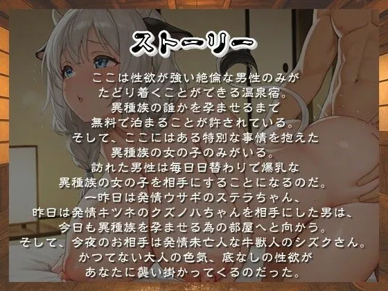 爆乳異種族専用種付け温泉宿へようこそ!〜三夜目は発情未亡人な牛獣人のシズクさん〜【けもみみ/中出し/母乳】