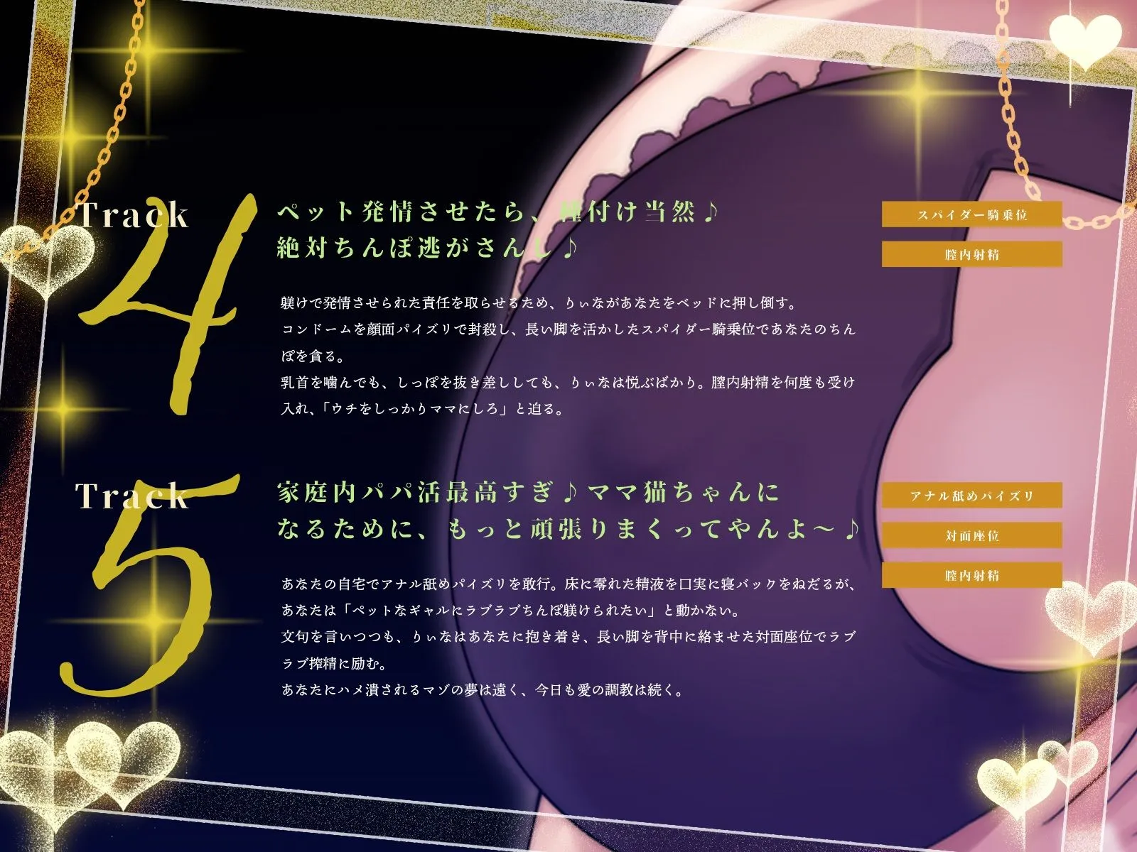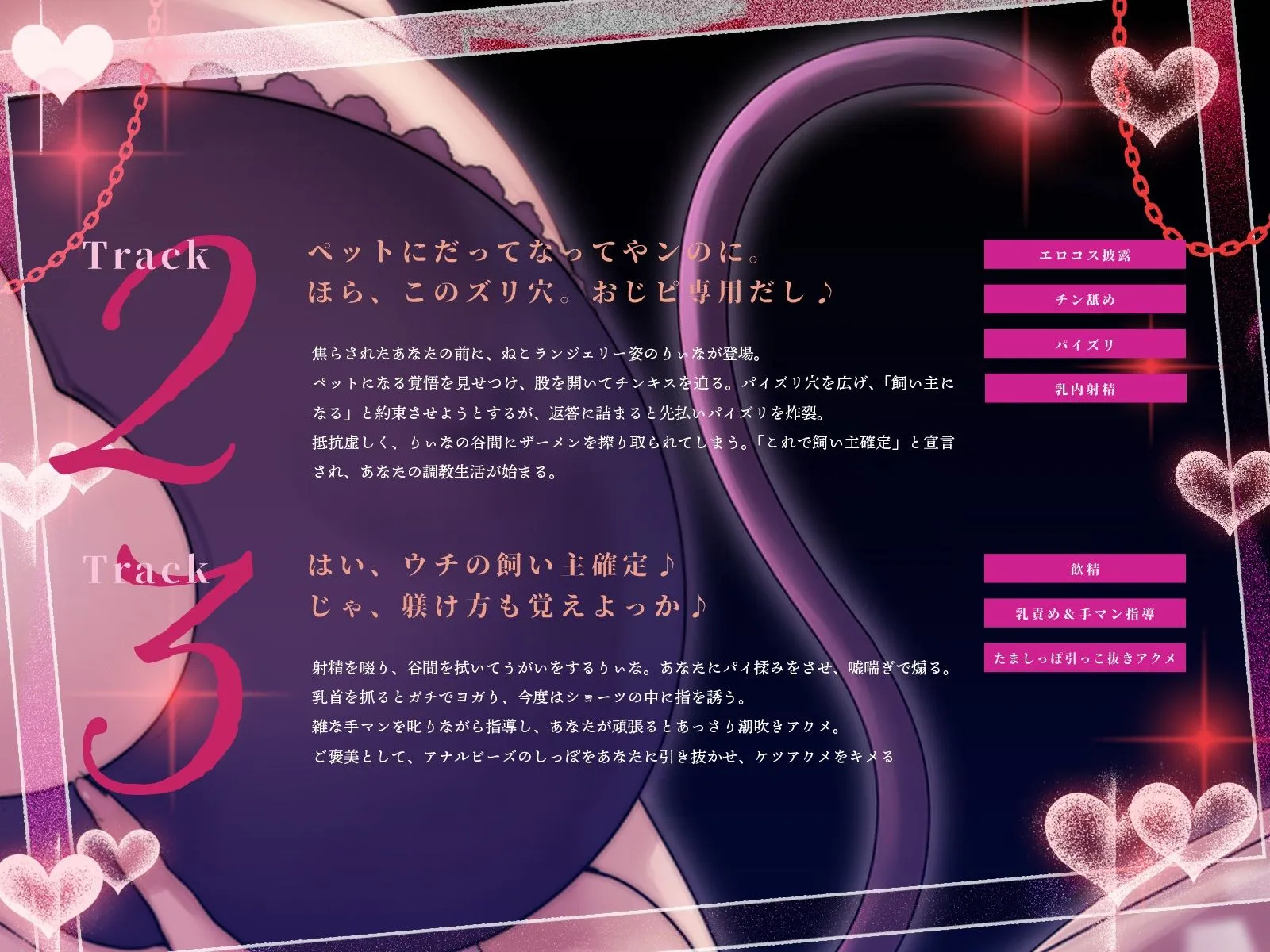 抵抗虚しく、りぃなの谷間にザーメンを搾り取られてしまう。「これで飼い主確定」と宣言され、あなたの調教生活が始まる。