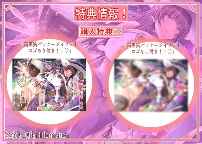 期間限定購入特典 1:パッケージイラストの全裸差分・陰毛差分・表情差分・ボテ腹差分・母乳差分・エフェクトなし差分・潮吹き差分 10枚♪
