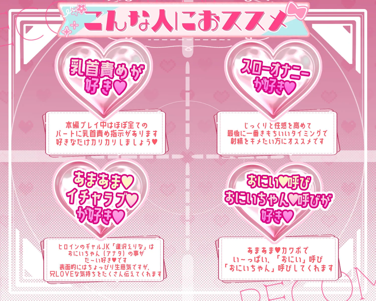 たっぷり濃厚キス多め/乳首カリカリ/おにい好きをたっぷり楽しめる甘々エンド