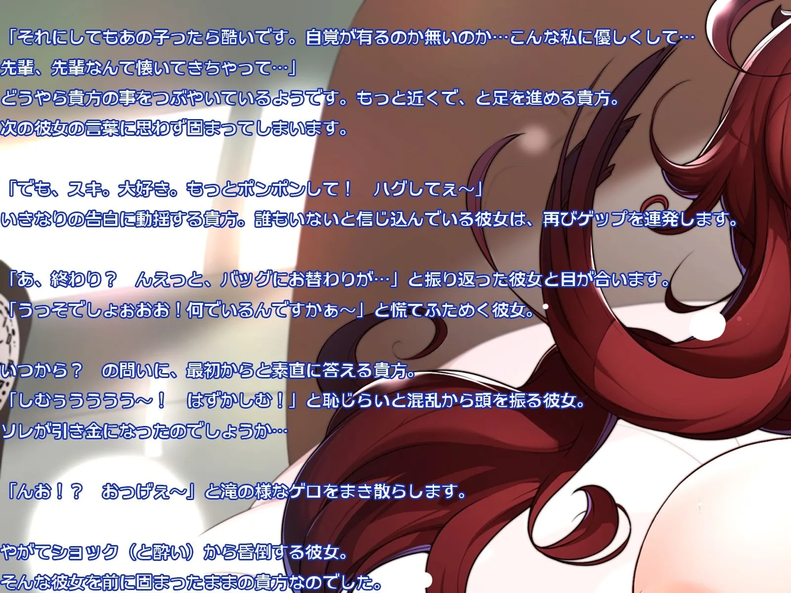 やがてショック(と酔い)から昏倒する彼女。