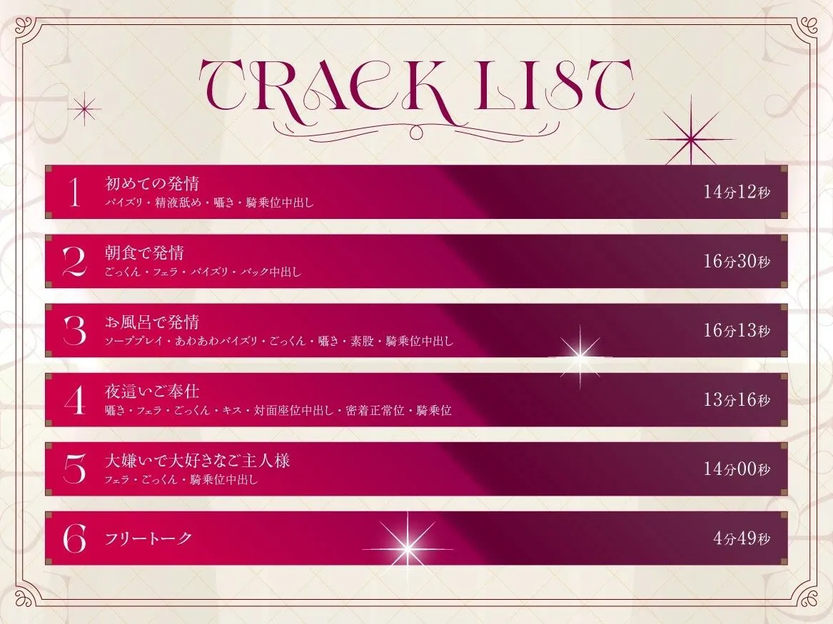 耳舐め、囁きなどのバイノーラルならではのプレイもふんだんに入っておりますので、是非イヤホンやヘッドホンでお聴き下さいませ。