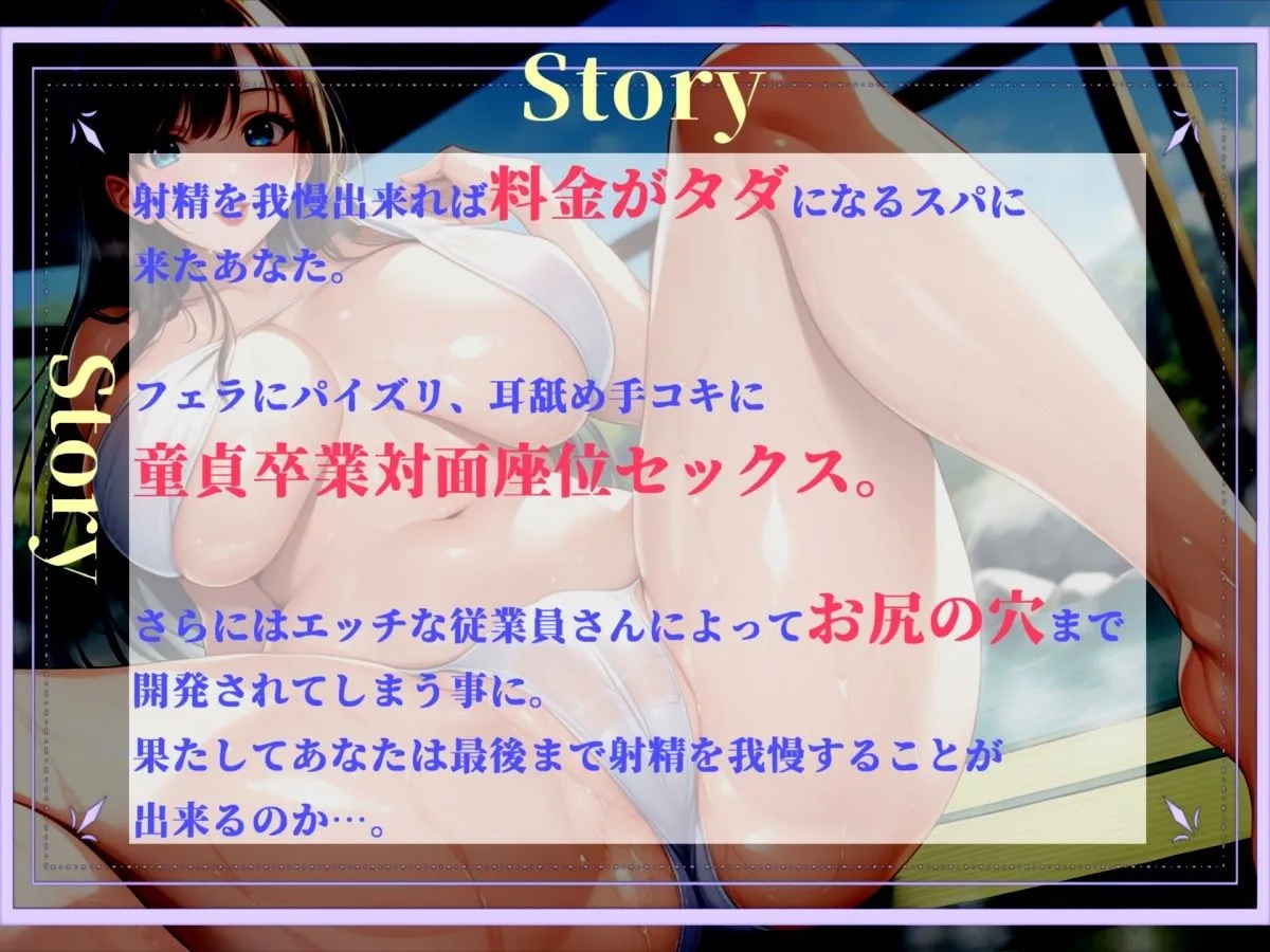 【オホ声】スパ温泉フルコース♪最後まで射精を我慢できたら、料金をタダにしてくれるスパで童貞卒業♪ 爆乳女将に寸止めカウントダウンで限界焦らし射精