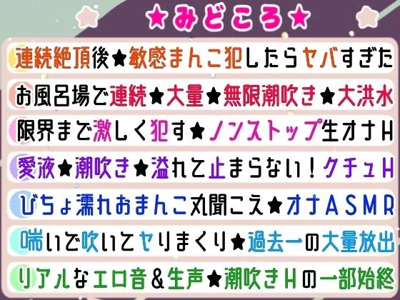 今作は【連続絶頂】シた後の敏感状態での【潮吹きH】をありのままに録音シた【オナニー実演】音声ございます!