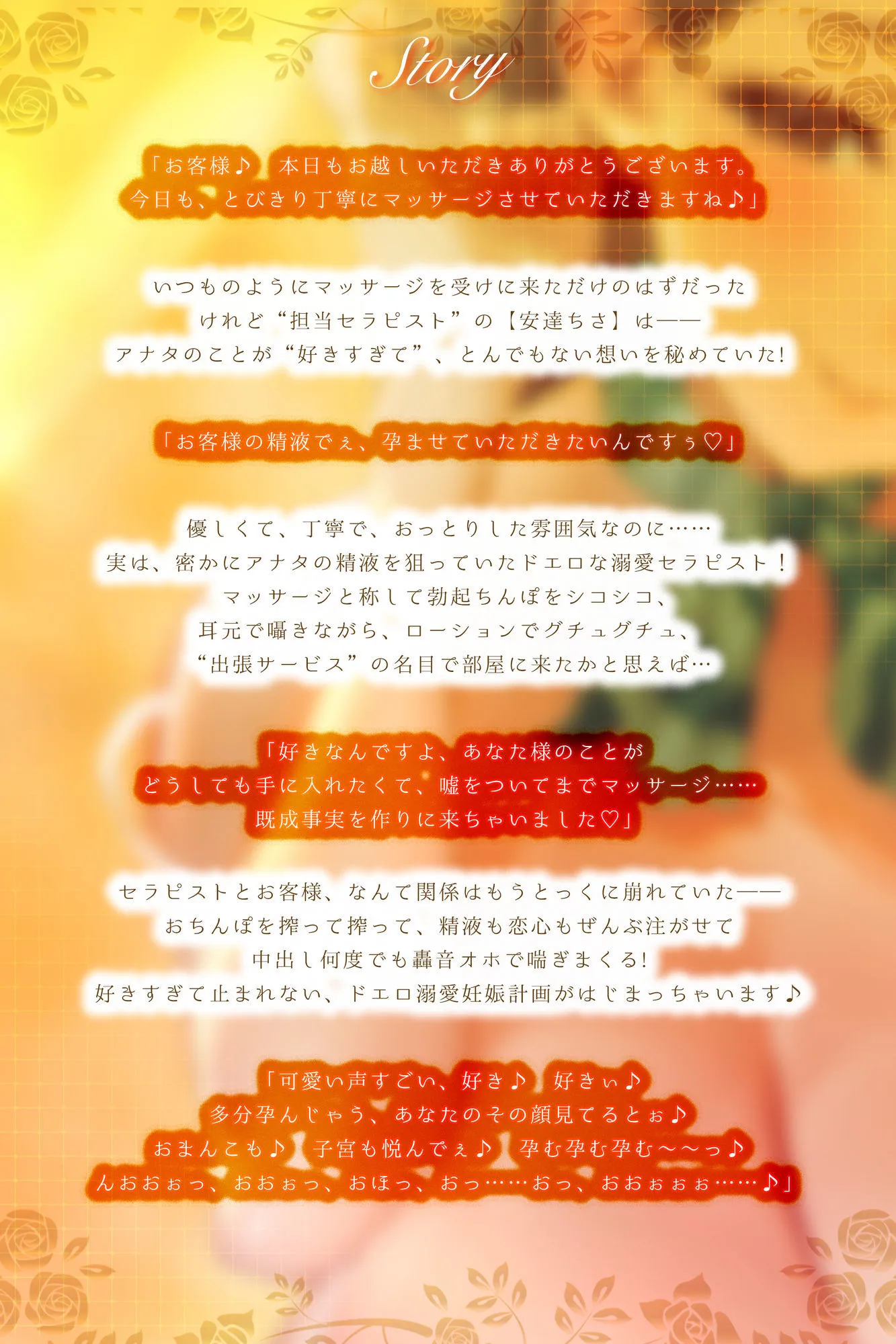 ●『今日は…中に出しても、いいんですよ?♪』〜轟音オホで孕ませられる!セラピストの溺愛施術♪〜CV:柚木つばめ様