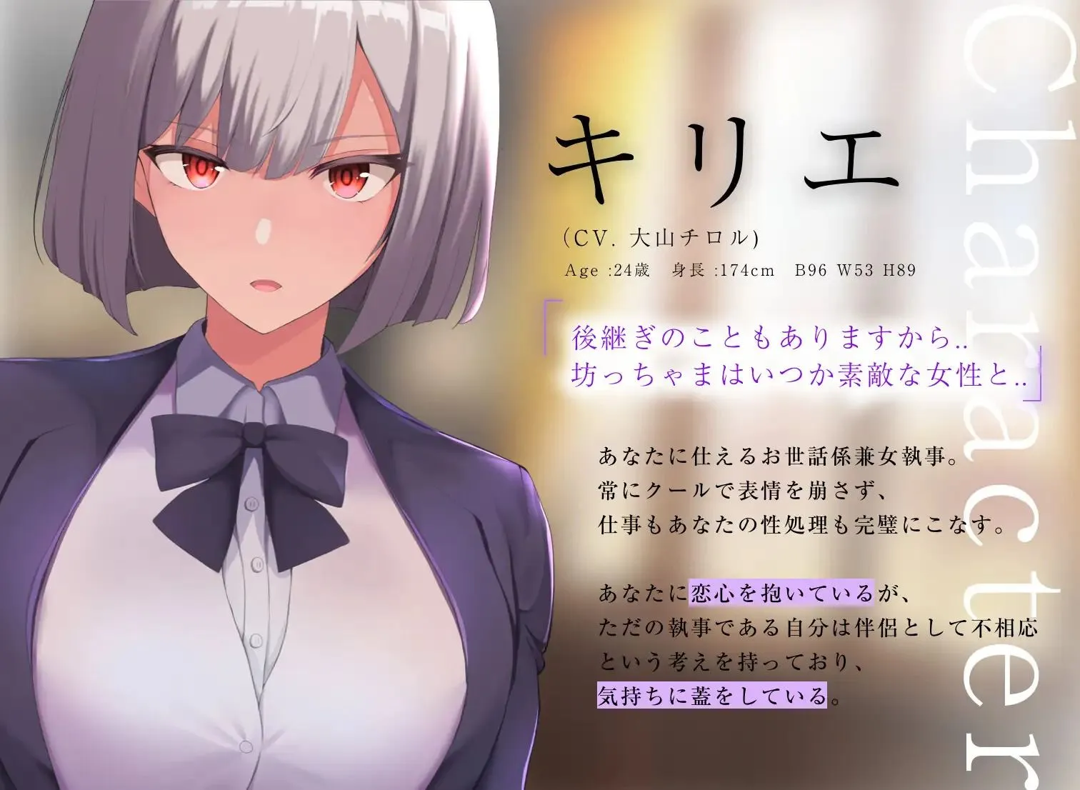 あなたに仕える低音でクールな女執事キリエは、密かに想っているあなたに「好き」と言われると、