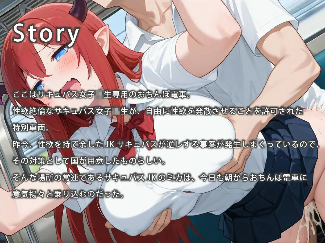 そんな場所の常連であるサキュバスJKのミカは、今日も朝からおちんぽ電車に意気揚々と乗り込むのだった。