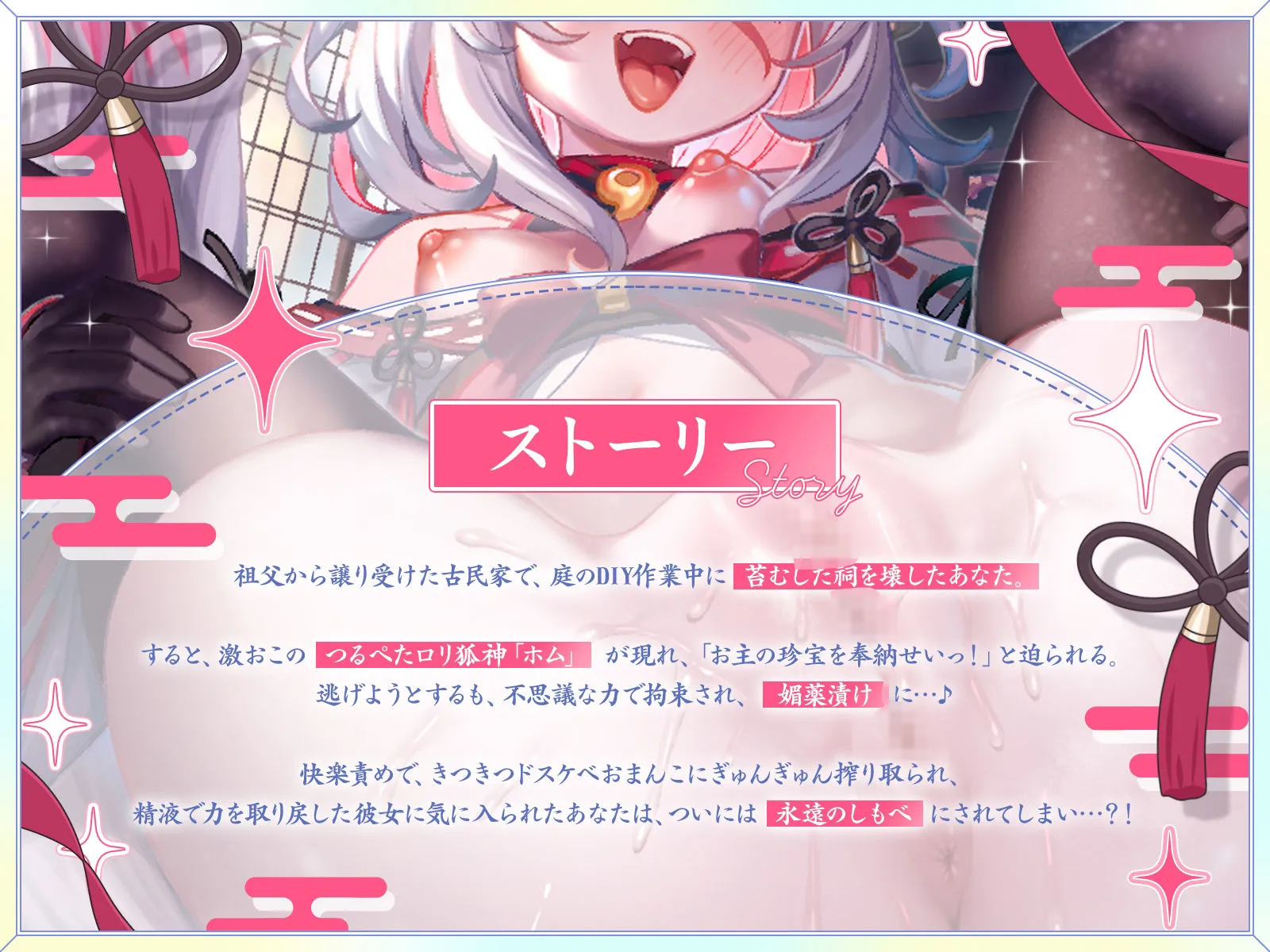 すると、激おこのつるぺたロリ狐神「ホム」が現れ、「お主の珍宝を奉納せいっ!」と迫られる。