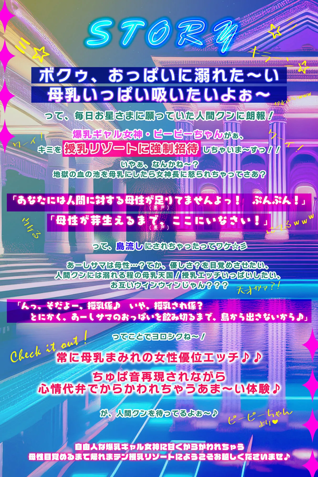●人間クン、上手にちゅぱちゅぱするんでちゅよぉ〜?爆乳ギャル女神の強●・生絞り母乳エッチ♪♪♪ CV・餅梨あむ 様