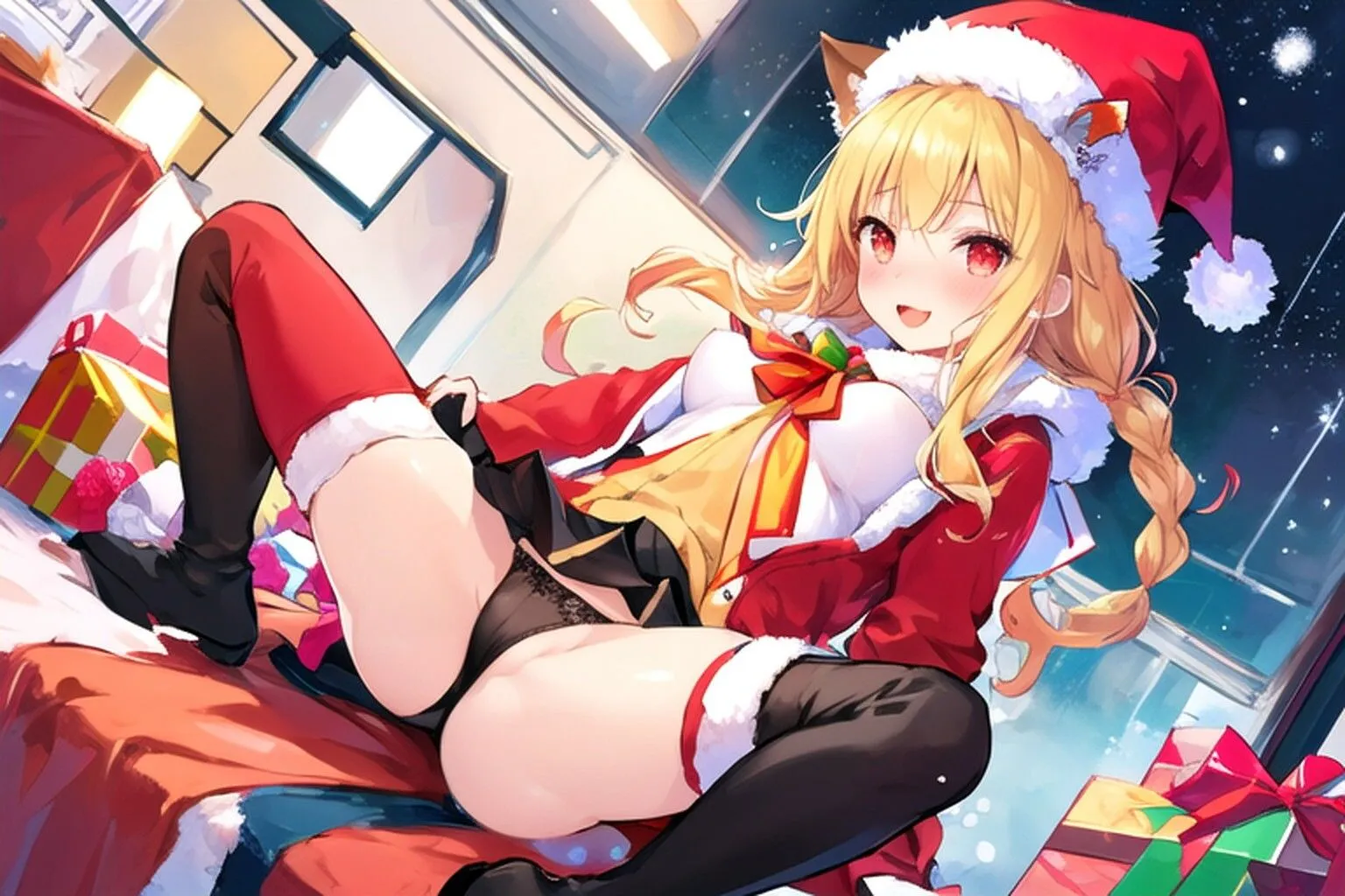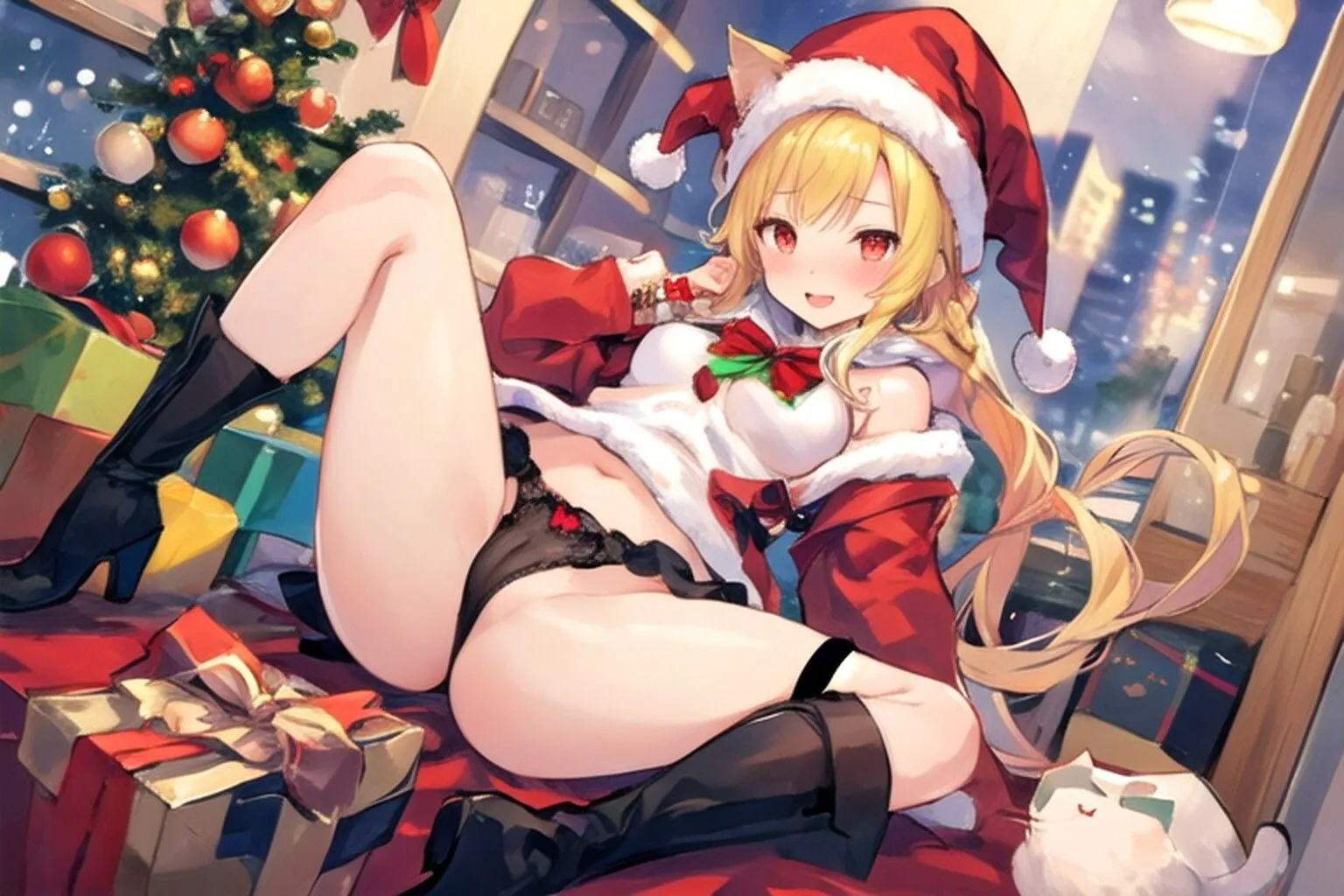 猫のサンタさんがプレゼントを持ってきた…のだが