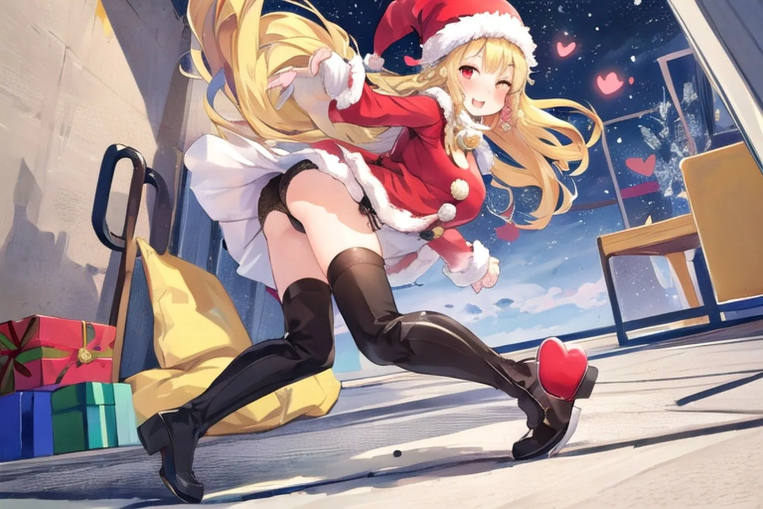 さらにプレゼントの袋が裂けて中身を散乱させてしまうというドジな状況…