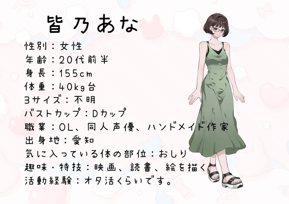 今回お話ししてくださるのはOLとして働く傍ら、同人声優やハンドメイド作家としても活躍されている皆乃あなさん。