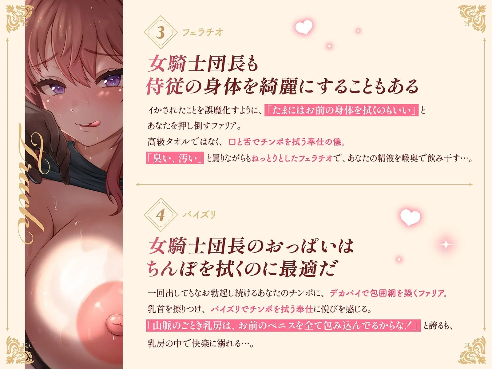 女騎士団長のおっぱい拭き係〜ツンデレドM団長は、侍従のチンポで討伐されるのを待っている〜(KU100マイク収録作品)