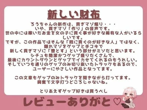 (1)【ゲップ×耳舐め×貢ぎマゾ】わるぅい女の子専用のお財布探し♪耳舐めゲップ手コキされたかったら貢げ……貢げ……マ〜ゾw(長さ:33分48秒)