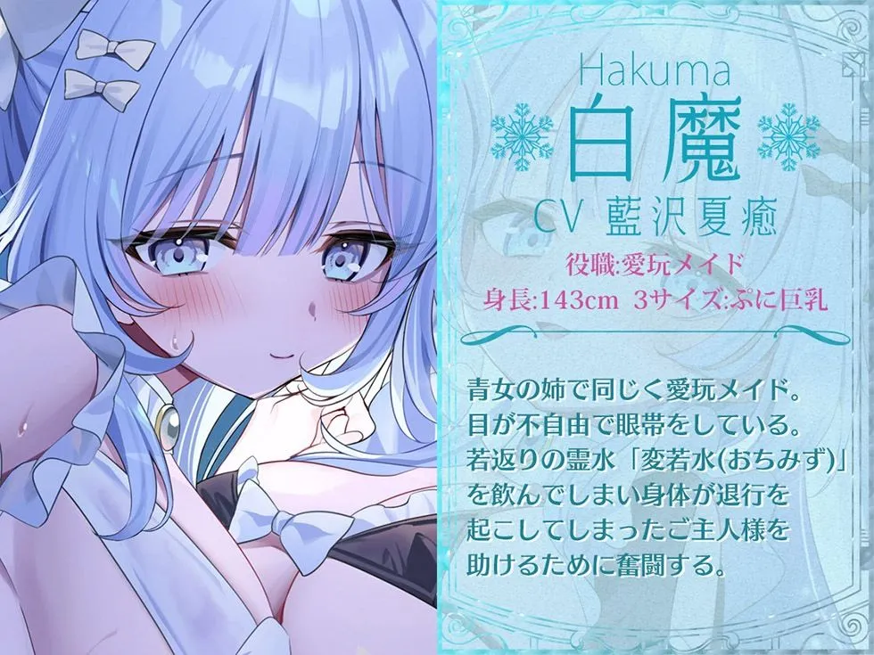 若返りの霊水「変若水(おちみず)」を飲んでしまい身体が退行を起こしてしまったご主人様を助けるために奮闘する。