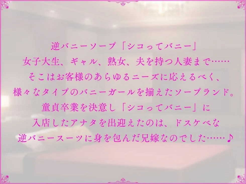 童貞卒業を決意し「シコってバニー」に入店したアナタを出迎えたのは、ドスケベな逆バニースーツに身を包んだ兄嫁なのでした……♪