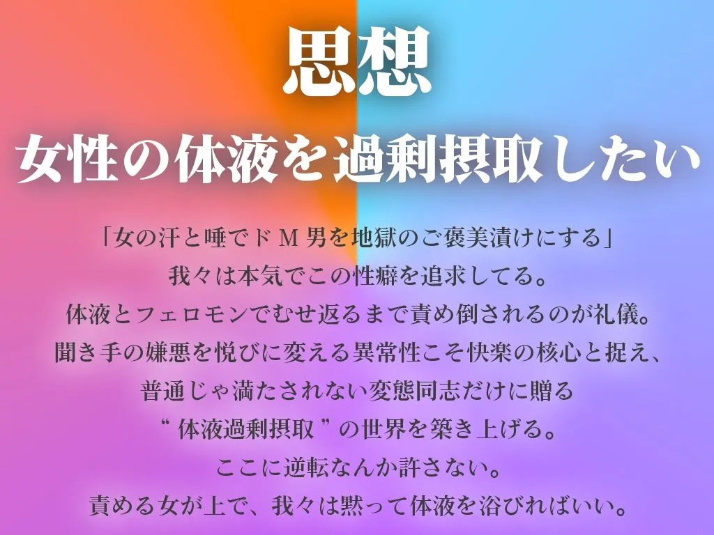 女に体液責めされる喜びを貪るためにある。
