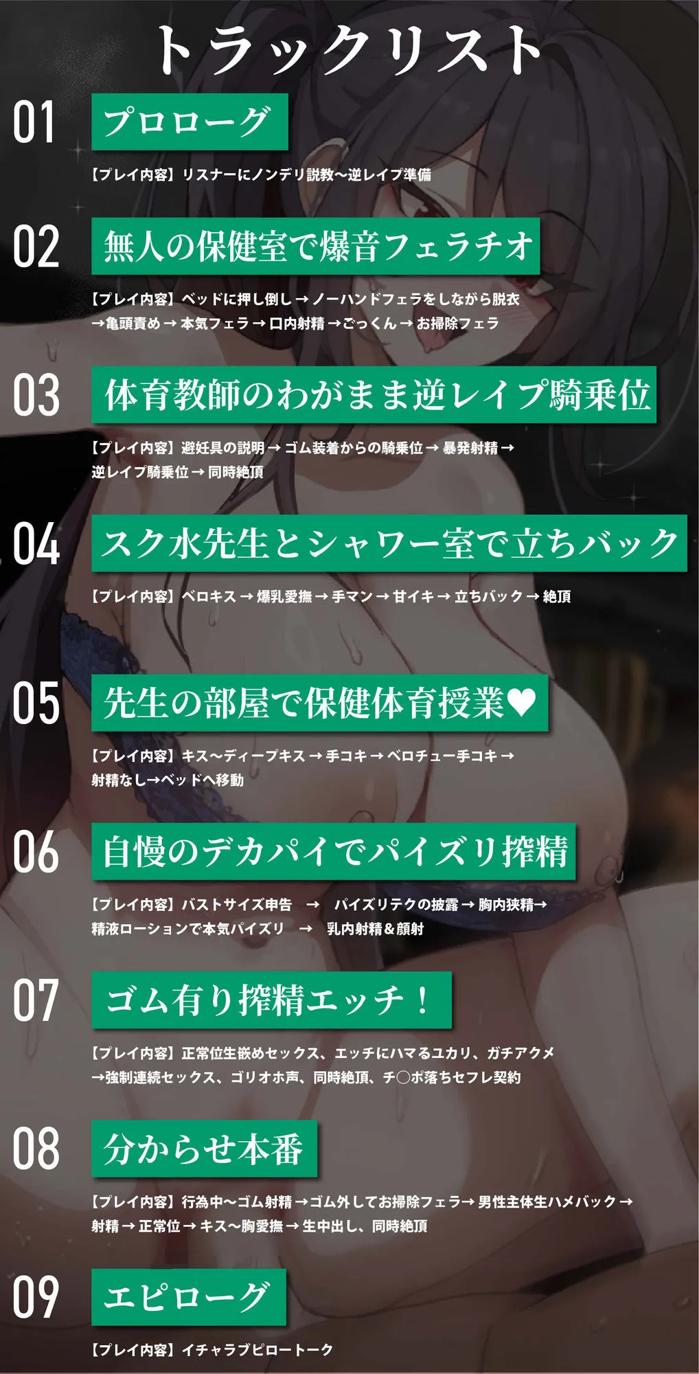 保健室からシャワー室まで色々な場所で貴方を犯し尽くします。