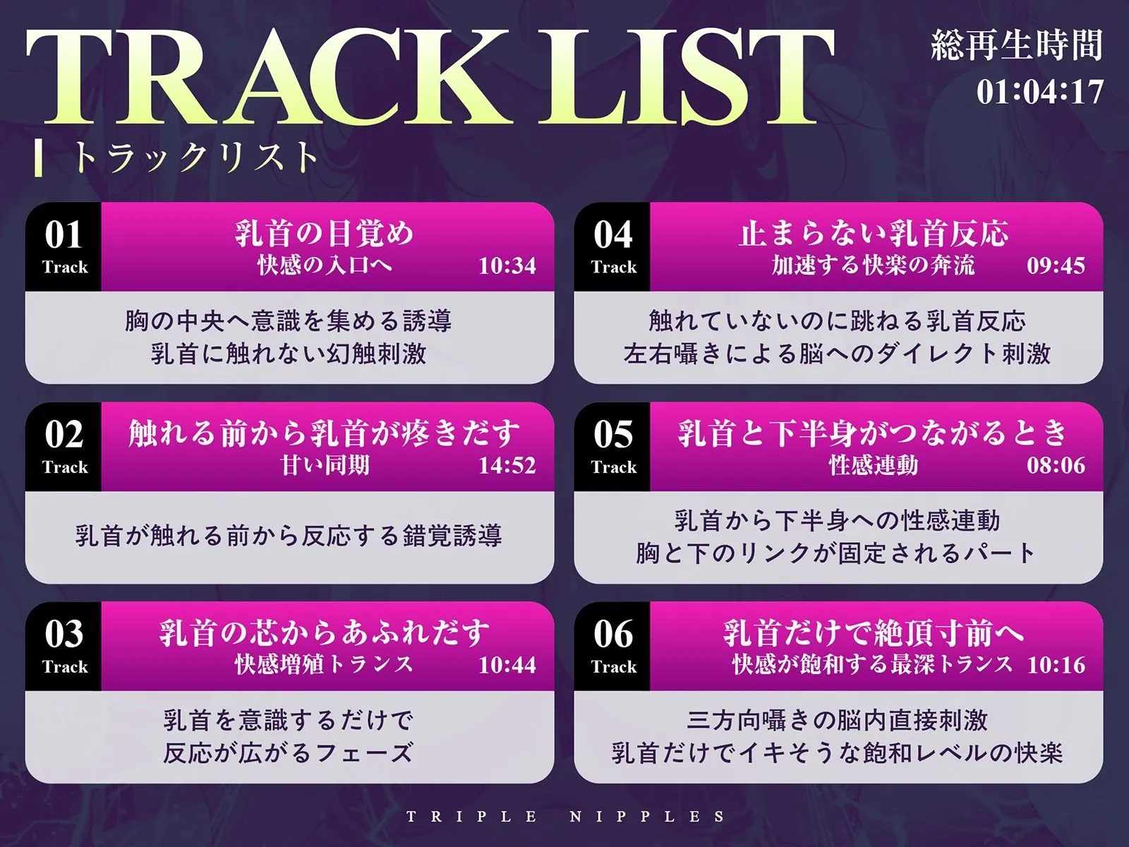本作は、音そのものが意識を変性させる「サウンドドラッグ技術」を核にした、乳首開発特化のプログラムです。