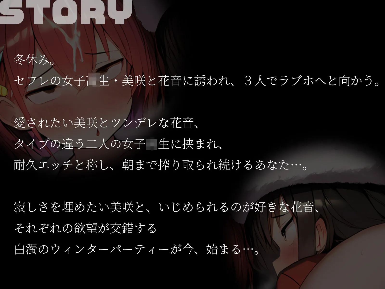 それぞれの欲望が交錯する白濁のウィンターパーティーが今、始まる…。