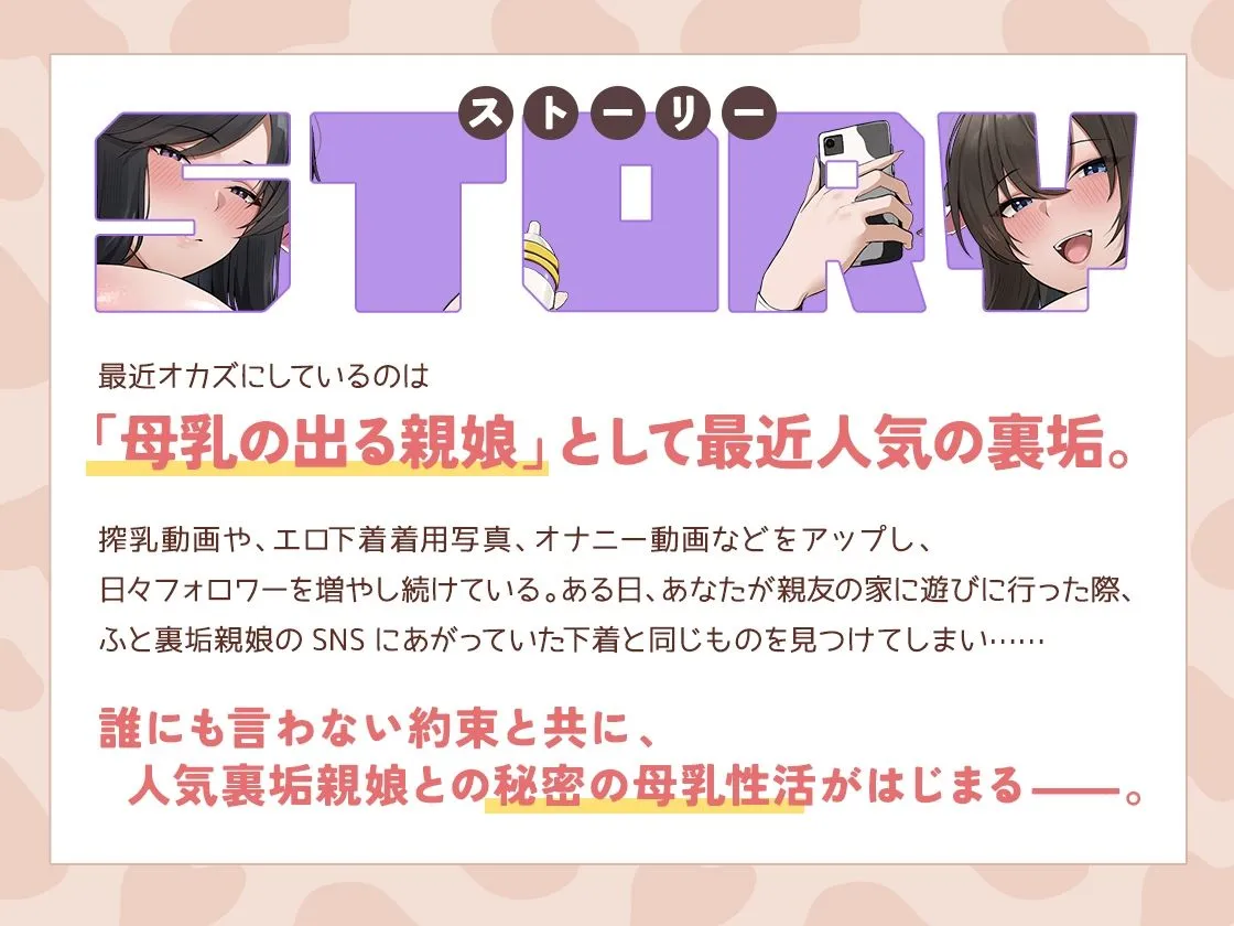 誰にも言わない約束と共に、人気裏垢親娘との秘密の母乳性活がはじまる――。