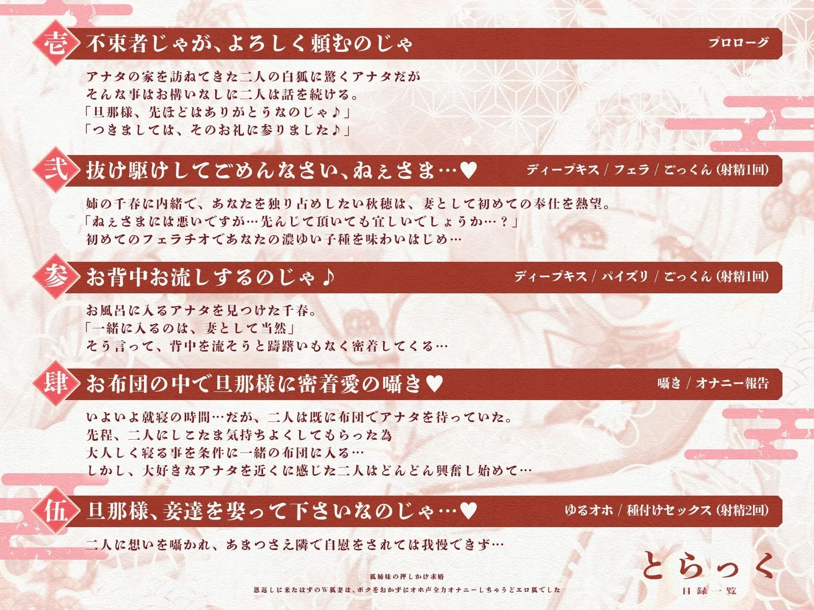 狐姉妹の押しかけ求婚〜恩返しに来たはずのW狐妻は、ボクをおかずにオホ声全力オナニーしちゃうどエロ狐でした〜【KU100収録】