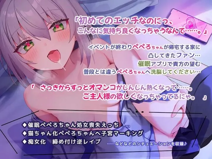 「初めてのエッチなのにっ、こんなに気持ち良くなっちゃうなんて……。」 イベントが終わりぺぺろちゃんが帰宅する家に 凸してきたファン… 催○アプリで貴方の望む 普段とは違うぺぺろちゃんへ洗脳してください…♪ 「 さっきからずっとオマンコがじんじん熱くなって……。 ご主人様の欲しくなっちゃってるにゃ。」
