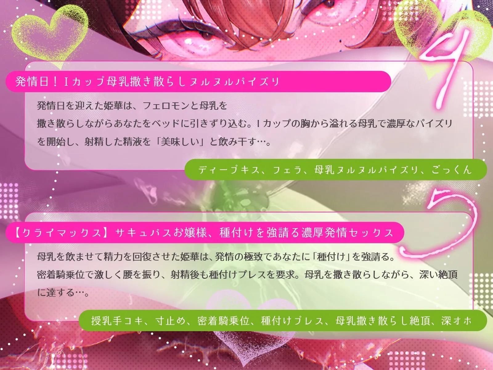発情日を迎えた姫華は、フェロモンと母乳を撒き散らしながらあなたをベッドに引きずり込む。