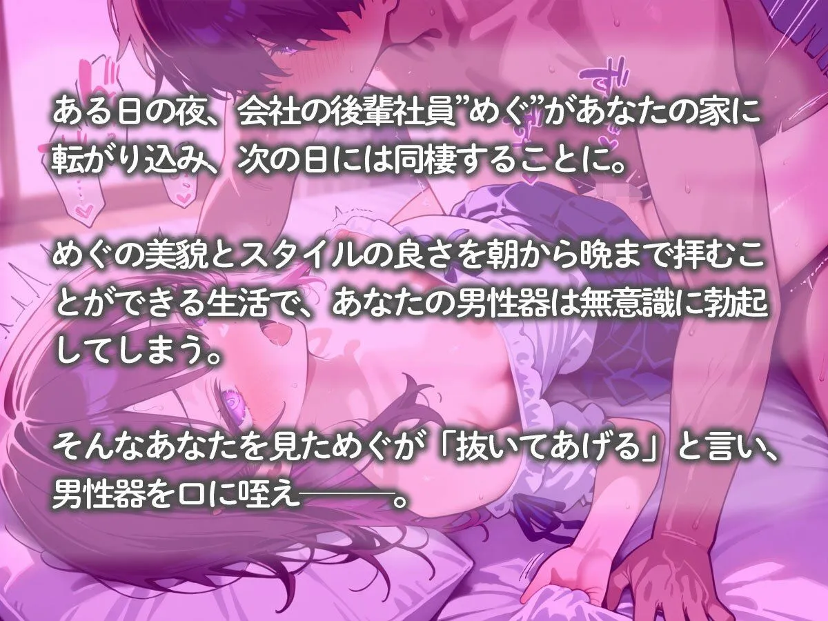 ある日の夜、会社の後輩社員’めぐ’があなたの家に転がり込み、次の日には同棲することに。