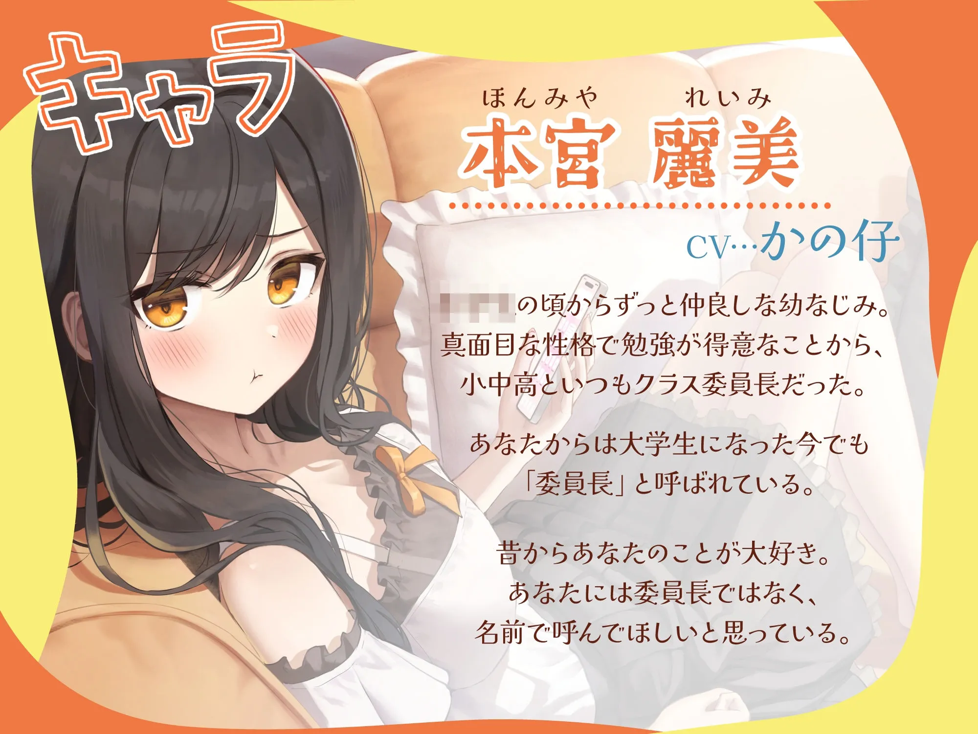 委員長って呼んだら怒っちゃう、同じ大学に通う幼なじみとの日常や濃厚エッチを、かの仔様のボイスで楽しむことができます。