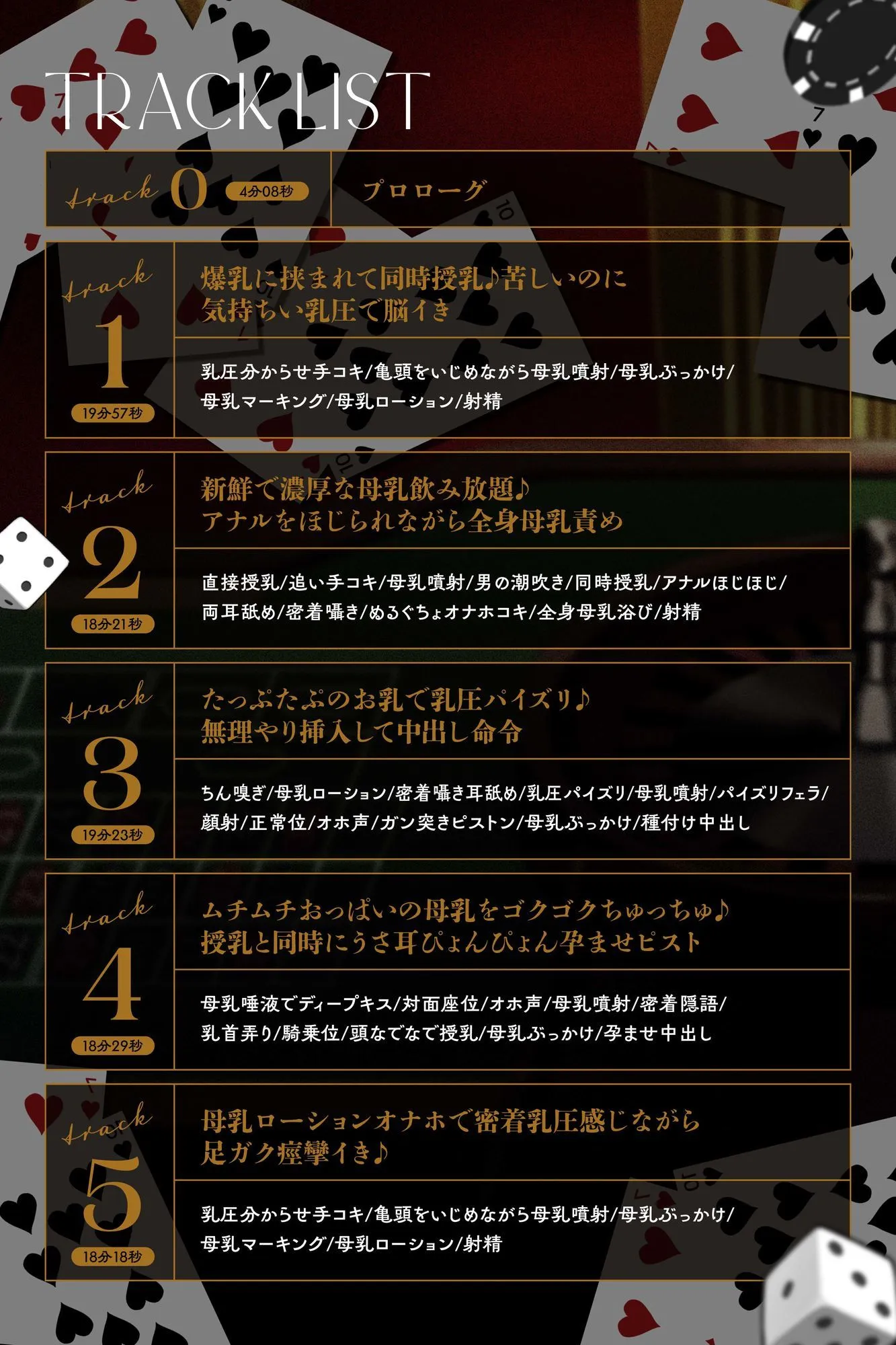 (ちん嗅ぎ/母乳ローション/密着囁き耳舐め/乳圧パイズリ/母乳噴射)