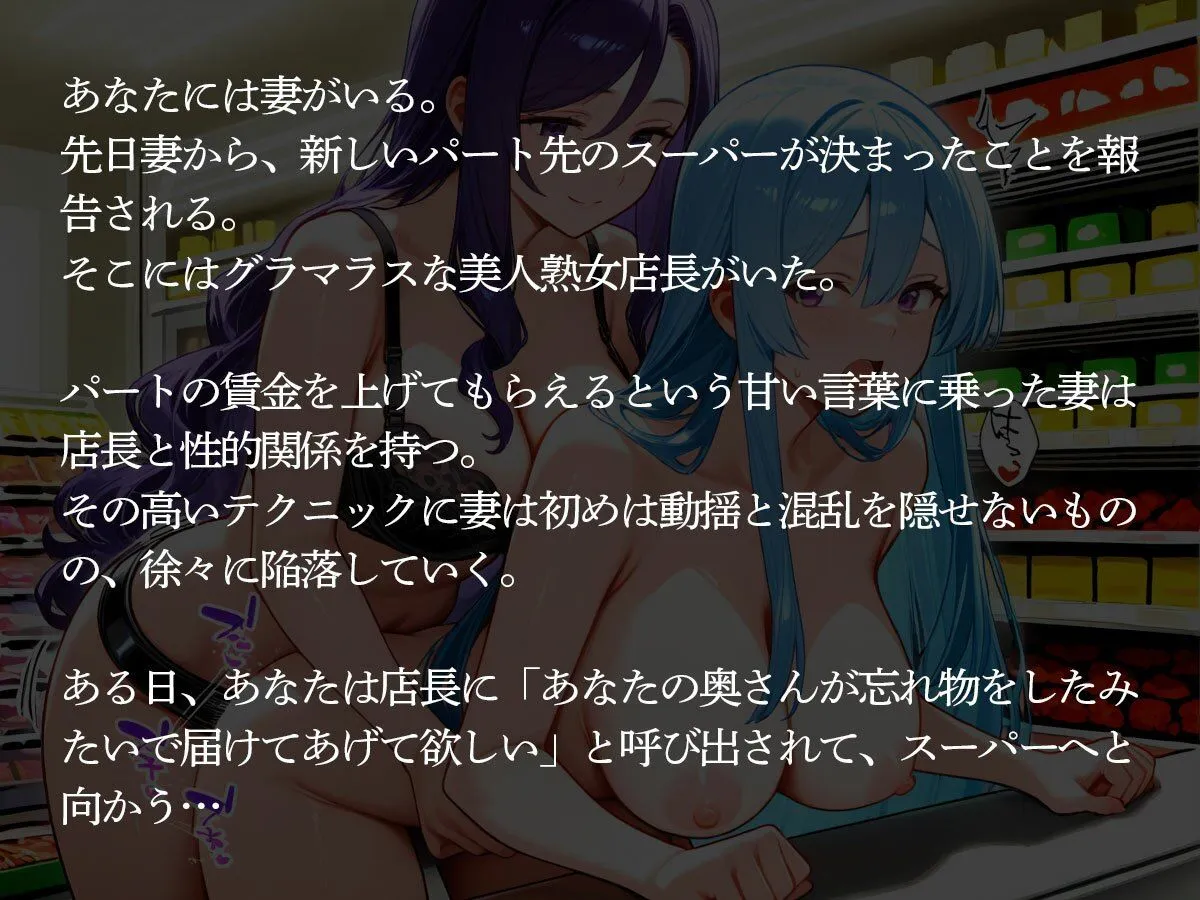 そんなある日、あなたは店長に「あなたの奥さんが忘れ物をしたみたいで届けてあげて欲しい」と呼び出されて、スーパーへと向かう。
