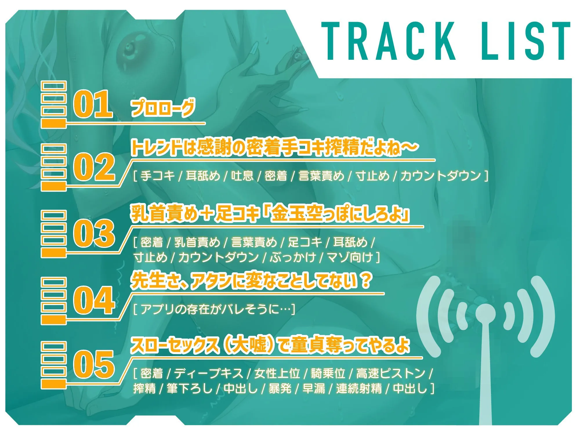 セット内容:Tr01〜Tr05(本編)、フリートーク(おまけ)、パッケージイラスト